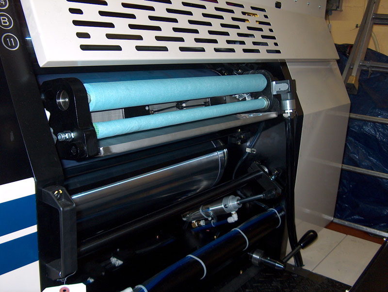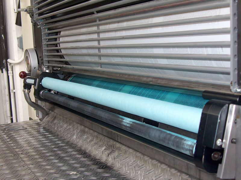 Gewaschen wird mit Papierlauf, mit Papierstillstand und mit automatischem Rollenwechsel. Anschließend kann das Gummituch nass, feucht oder trocken ausgewählt werden.